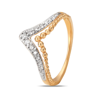 Designed with an inverted V-shape on the front, that is partially rhodium-plated, along with the most exquisite diamonds on top of them, this diamond ring is the perfect depiction of a queen’s tiara. The fifteen-round brilliant-cut diamonds of SI2 clarity and I-J colour range supplement the V-shape tiara look like no other. Just below them sit the perfectly polished gold beads to supplement the style.