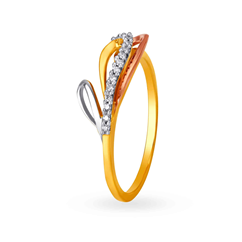 Composed of three different gold variants; yellow, white and rose gold, this 14KT gold finger ring is equipped with fourteen round brilliant cut diamonds of SI2 clarity and I-J colour grade. The diamonds are again embedded on a rhodium-plated, shared prong setting for enhanced lustre.